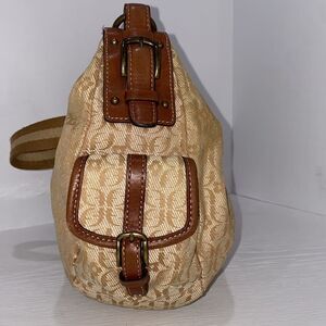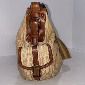 Fossil Vintage East West Shoulder Bag In Tan And Brown With Side Pockets