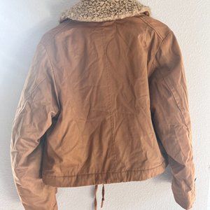 Fossil Vintage Faux Fur Collar Tan Jacket Size XS
