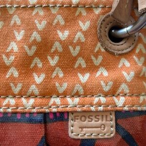 Fossil Vintage Key-Per Crossbody Hobo Canvas Bag Paisley Design Orange Hot Pink Rust Cream Mustard Black Navy Blue. Made of canvas and coated canvas, a zip closure, zip pocket on outside, one inside, with a fabric lining with a multicolor pattern, and a crossbody adjustable strap for easy wear. **Pls see all photos-a few pen marks on the outside. Otherwise in excellent condition!!***