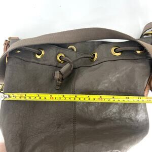 Fossil Vintage Reissue Maddox Gray Leather Drawstring Purse Bag