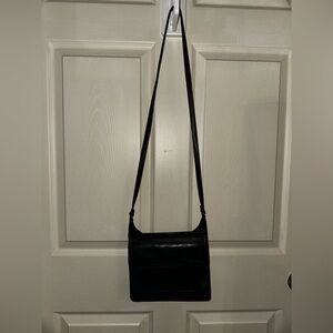 Fossil Sleek black leather crossbody bag.