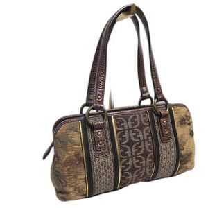 Fossil Vintage Tapestry Leather Shoulder Bag Purse Pockets Croc Embossed