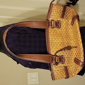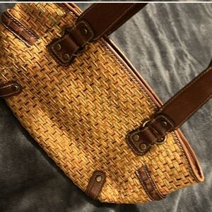 This stylish vintage fossil woven tote bag is perfect for any occasion. Its elegant design and durable construction make it a must-have accessory. Has leather straps and detail with classic fossil bag charm. Great vintage condition!!