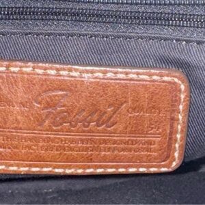 Fossil Vintage Y2K Crossbody Bag Charcoal Gray Canvas & Brown Leather Handbag