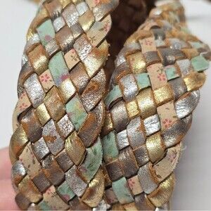Fossil Vintage Y2K Genuine Leather Floral Fabric Boho Hippie Festival Belt.