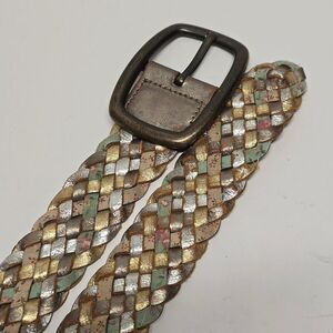 Fossil Vintage Y2K Genuine Leather Floral Fabric Boho Hippie Festival Belt M