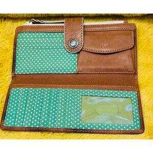 Fossil Vintage Zip Around Wallet Geometric Floral Print checkbook wristlet boho