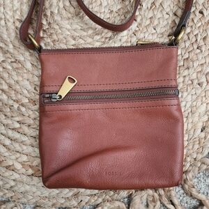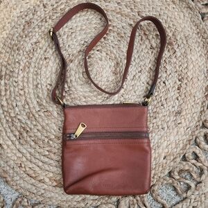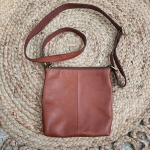 Fossil Voyager Pebble Cow Hide Leather Small Square Crossbody Brown