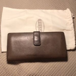 Fossil cream black and olive leather wallet. Natural aging of leather and wear on hardware, shown in photos. Comes with dust bag