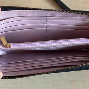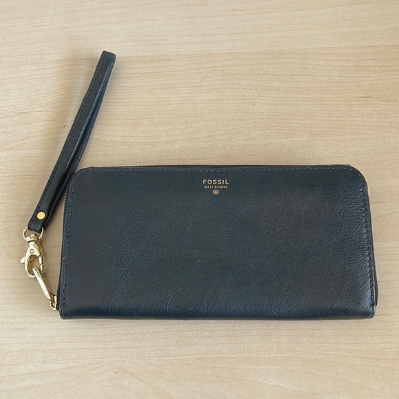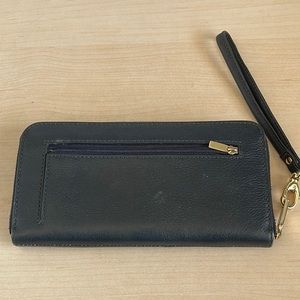 EUC navy blue Fossil zippered wallet. Thus has no damage or major signs of wear. The inside is very clean. It has a small wristlet strap, as shown in photos. Final sale.