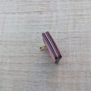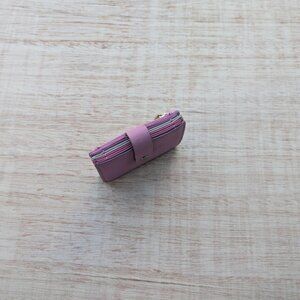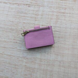 Fossil card wallet in shades of pink, 4 compartments and outside zipper, 2.75 in x 4 in