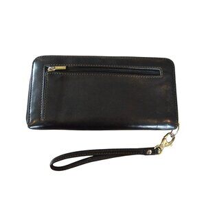 Fossil Wallet Black Leather Zip Around Accordion Wristlet Kelly Green Interior