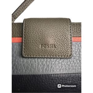 Fossil Wallet Emma Pebble Leather Blue Gray Brown Orange Stripe Clutch Womens Tab Closure 13 Credit Card Slots Zip Coin ID Window Bill Slot & Checks will fit too “ As Is”
