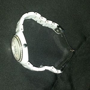 Women's Fossil Watch, only been worn about 5 times. All white on white. Diamonds around the face. Very unique because I haven't seen another one of this exact model. Ever. No links come with it. It fits my wrist and I'm a 17 year old guy so it will fit any women most likely & if its to big just take a link or two off.