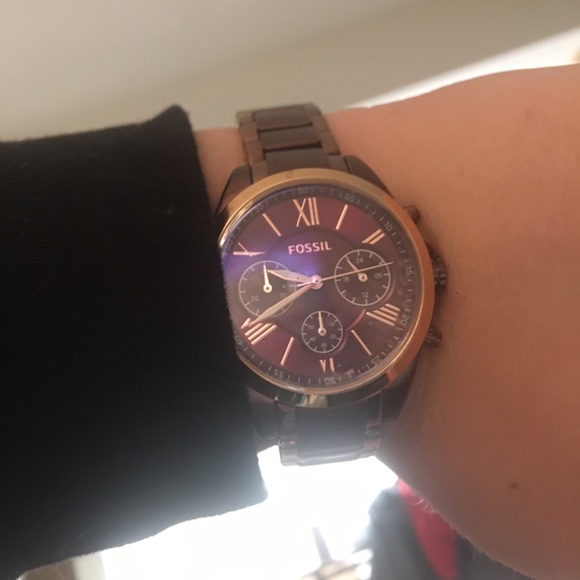 This is a beautiful multifunction watch! It will come with extra links and the box it came in. Pretty much brand new only worn a handful of times. New battery. You can take it to any fossil store and have it resized. It is engraved, but you can’t see it unless you really look and it’s under the watch so you don’t see it while you’re wearing it.
