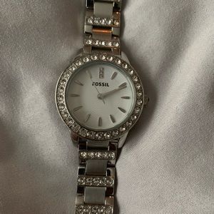Silver Fossil watch. Gently used. A little wear is shown in the third and fifth picture. Comes with add on links.