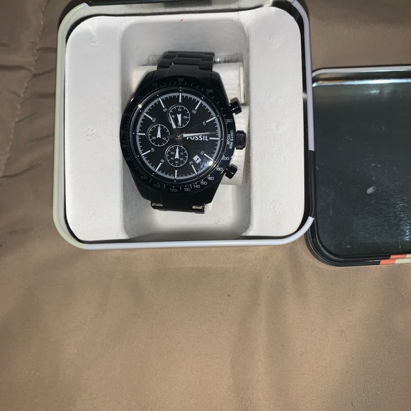 Men’s all black Fossil Watch never worn, still in box