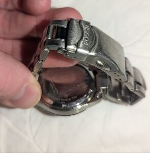 silver sunburst fossil watch scratches but overall decent condition.