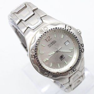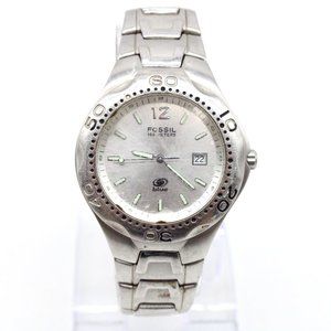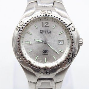 Fossil Watch Mens Silver Tone Stainless Steel Blue Classic 100M WaterProof