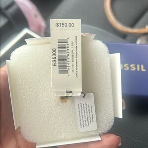 Elegant Fossil watch ring featuring a vibrant green dial.