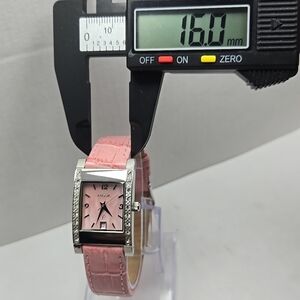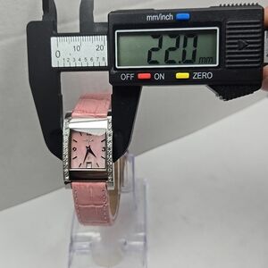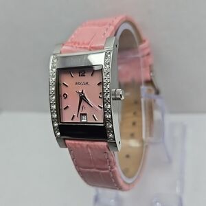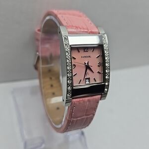 Fossil Watch Women Silver Tone Pink MOP Dial Pave Bezel Leather New Battery