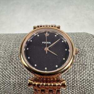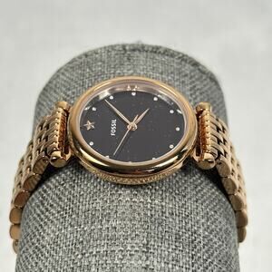 Fossil Watch Womens 28mm Rose Gold Tone Black Glitter Dial Star New Battery