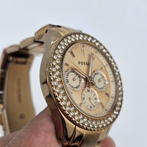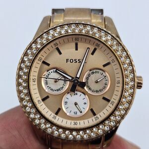 Fossil Watch Women's Watch 38MM Gold Dial Bracelet Band Day Date 6" New Battery