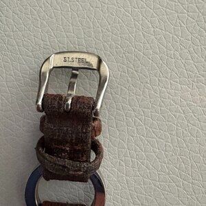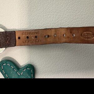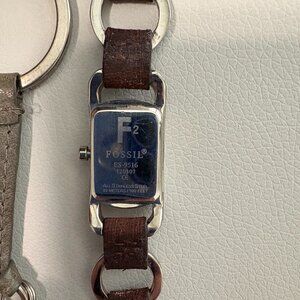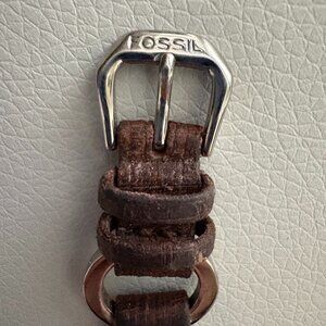 8” Fossil watch with genuine brown leather and silver tone metal band. Not functioning at this time. It has not been tested, but probably needs a battery. Included is a leather bird shaped key fob. Use for your keys or add as a handbag ornament. 5 ¾” long. Please check out the other items in my closet. Bundle and save. Make an offer.