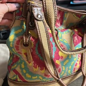 Fossil Watercolor Floral Woven Burlap Canvas and Leather NWT Beautiful BOHO vibe