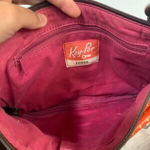 Fossil Waxed Canvas And Leather Orange Key-per Crossbody