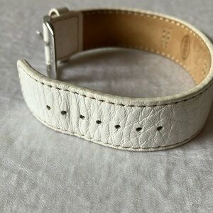 Fossil: White Leather Bracelet- Silver Tone Butterfly Accent