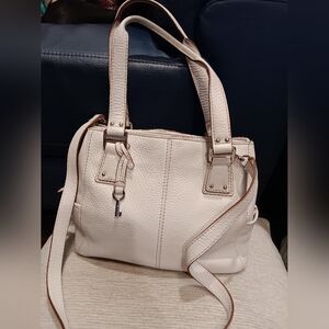 Chic Fossil shoulder bag in white. Features sturdy handles and a detachable strap. Ideal for everyday use.