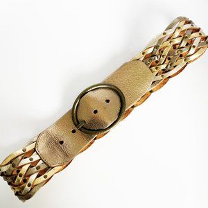 Fossil Wide Woven Braided Silver Gold Leather Belt