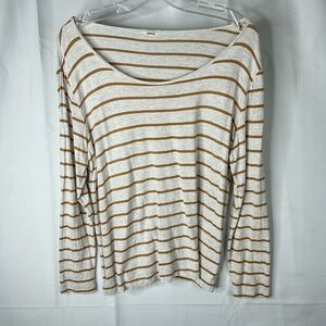 Fossil Women Size XL Brown Striped Long Sleeve Very Soft Lightweight T-Shirt