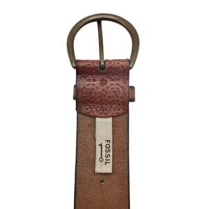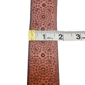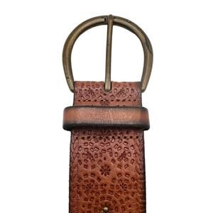 Fossil | Women | Tooled Studded Rustic Brown Leather Brass Buckle Belt | Medium