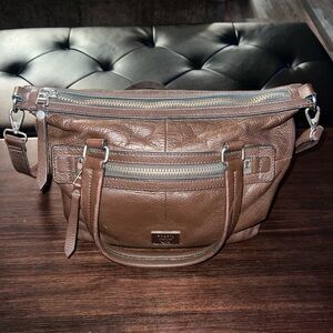 Fossil Women Two-Tone Leather Crossbody Handbag Size Medium.