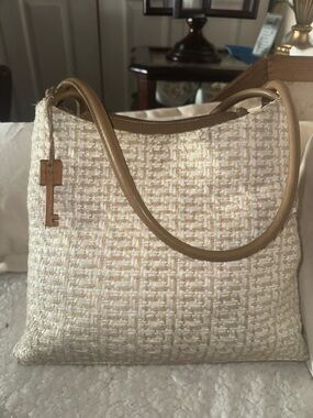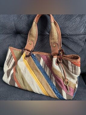 Fossil Women Two-Tone Leather Crossbody Handbag Size Medium.
