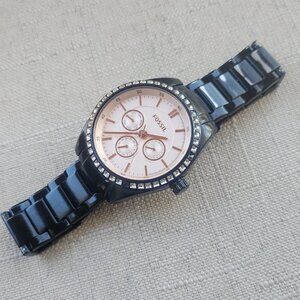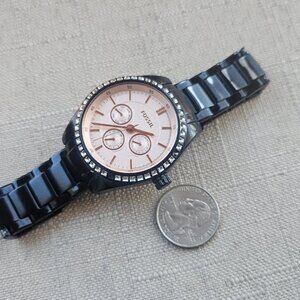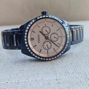 Fossil Women Watch Black Tone Metal Band Analog Multi Function wristwatch