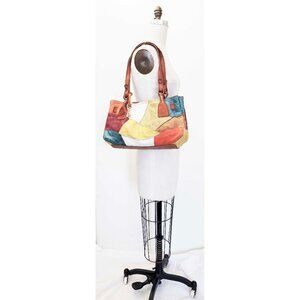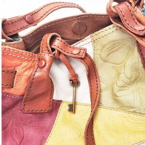 Fossil Womens 75082 Patchwork Colorful Leather Handbag Tote Purse Shoulder Bag