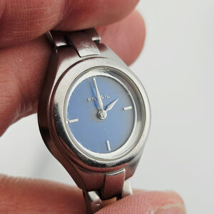 Fossil Women's BIG TIC Watch Dark Blue Dial Silver Link Band ES-9649 Classic