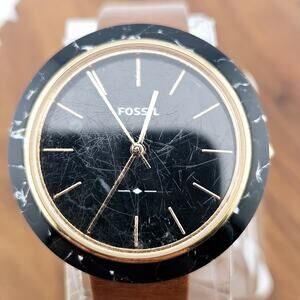 Fossil Womens Black Marble Bezel Watch Brown Leather Band Elevated Basic ES-4382