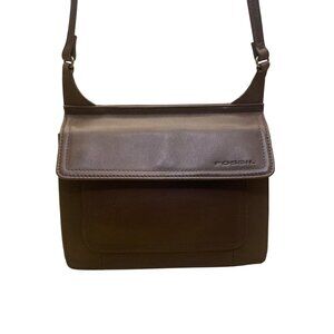 Fossil Women’s Brown Leather Flap Closure Adjustable Strap Crossbody Bag