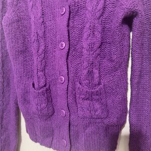 Fossil Women's Cable Knit Cardigan Size Large Purple Wool Blend Button Up Y2K