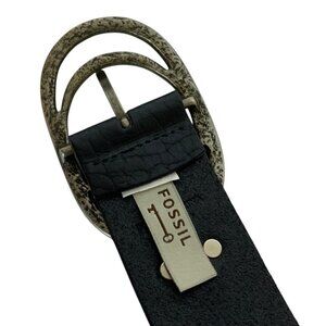 Fossil Womens Genuine Leather Belt Large Black With Double Oval Buckle
