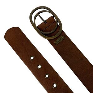 Fossil Womens Genuine Leather Belt Large Vintage Oval Buckle Chocolate Brown