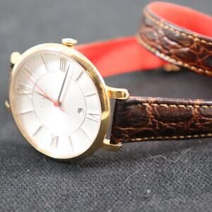 Fossil Women’s Gold Tone Watch w/ Brown Leather Wrap Strap – Untested