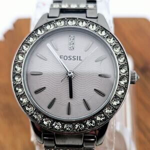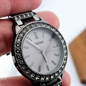Fossil Women's Jesse Smokey Gray Silver Watch Rhinestone Accent Links ES-3207