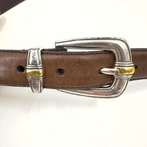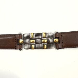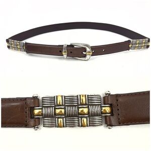 Fossil Womens Leather Belt Size L Brown Metal Insert Adjustable Vintage