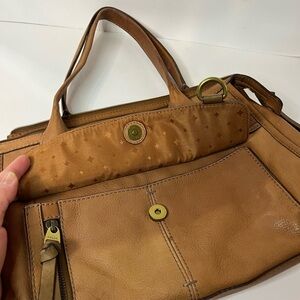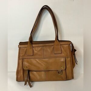 Fossil Womens Leather Handbag, Shoulder Bag Tan Pockets Boho Western