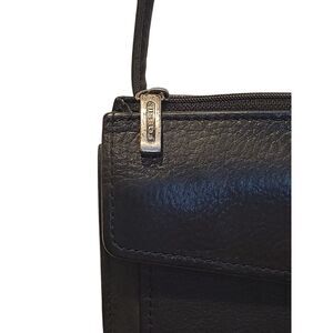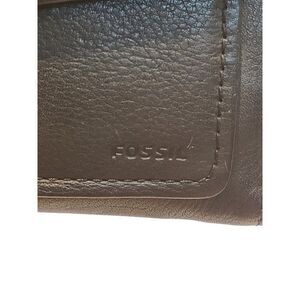 Vintage Fossil Women's Leather Wallet Black Trifold Snap Close Credit Card Slots with Crossbody Strap | Good USED Vintage Condition | Silver Hardware | *Flaw, the Logo Fossil Sipper shows signs of wear | Please refer to the photos for the condition | 7.5" x 4.75" | Shoulder Drop 22"